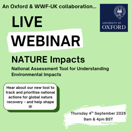 Hosted by a team from the University of Oxford in collaboration with WWF-UK, ‘NATURE Impacts’ is a new initiative designed to assess and accelerate national progress towards halting and reversing nature loss by 2030. As part of the global effort to achieve the Global Biodiversity Framework, we are developing an innovative tool to evaluate how nations can enhance their efforts to restore biodiversity, prioritise future actions, and support nature recovery.