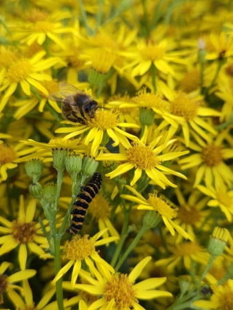 While 200 species3 have been recorded visiting ragwort, 61 invertebrate species use it as a food source and 30 of these are entirely dependent on it for their survival4. It provides a reliable resource for pollinators thanks to its long flowering season (June – November) and is the most frequently visited plant by butterflies in the UK3. The eradication of ragwort would therefore be detrimental for many species.